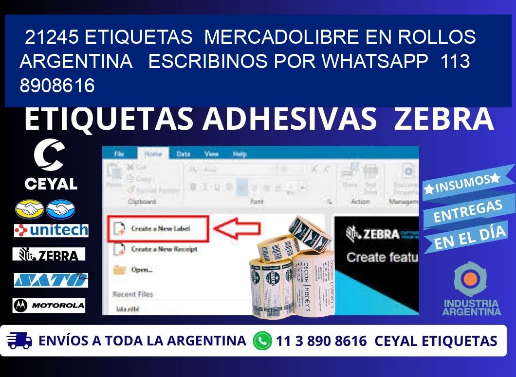 21245 ETIQUETAS MERCADOLIBRE EN ROLLOS ARGENTINA ESCRIBINOS POR WHATSAPP 113 8908616