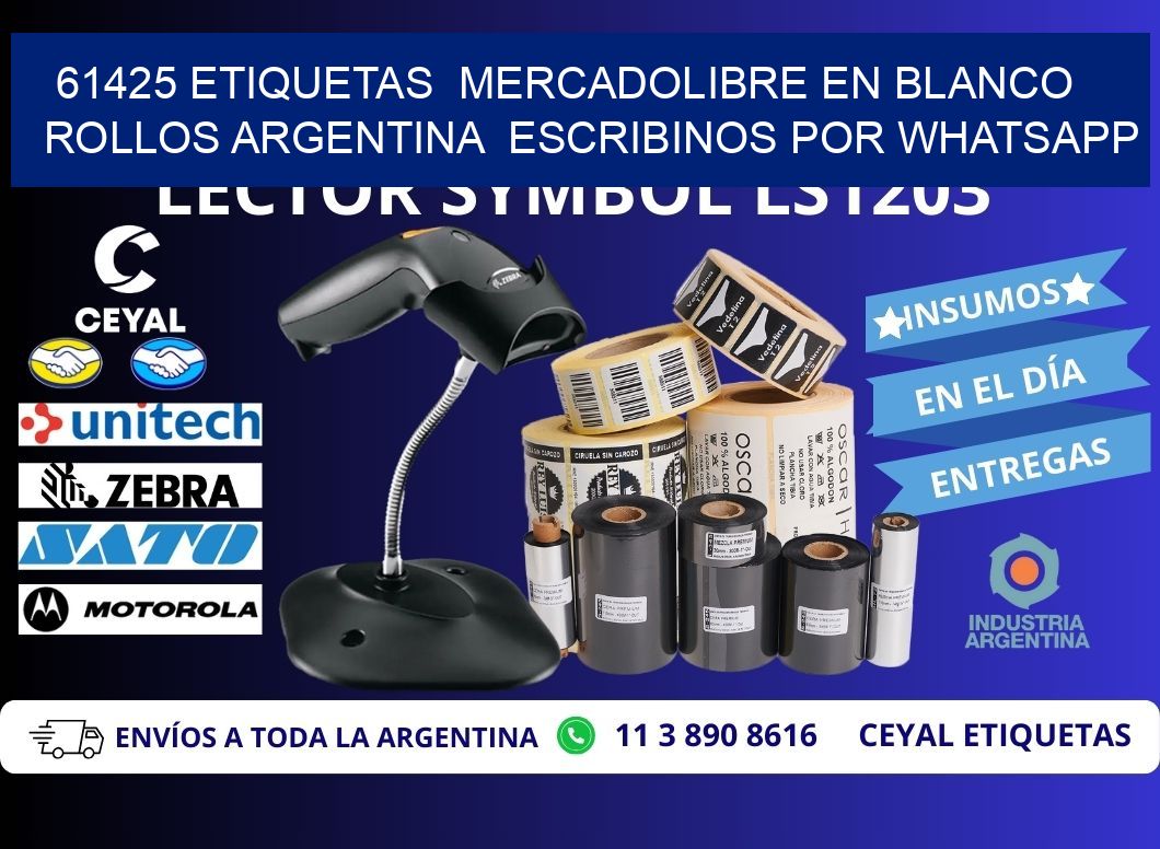 61425 ETIQUETAS  MERCADOLIBRE EN BLANCO ROLLOS ARGENTINA  ESCRIBINOS POR WHATSAPP
