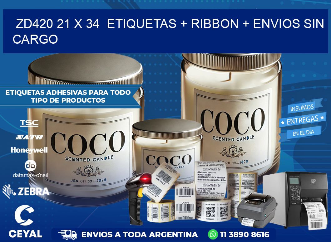 ZD420 21 x 34 etiquetas + ribbon + envios sin cargo