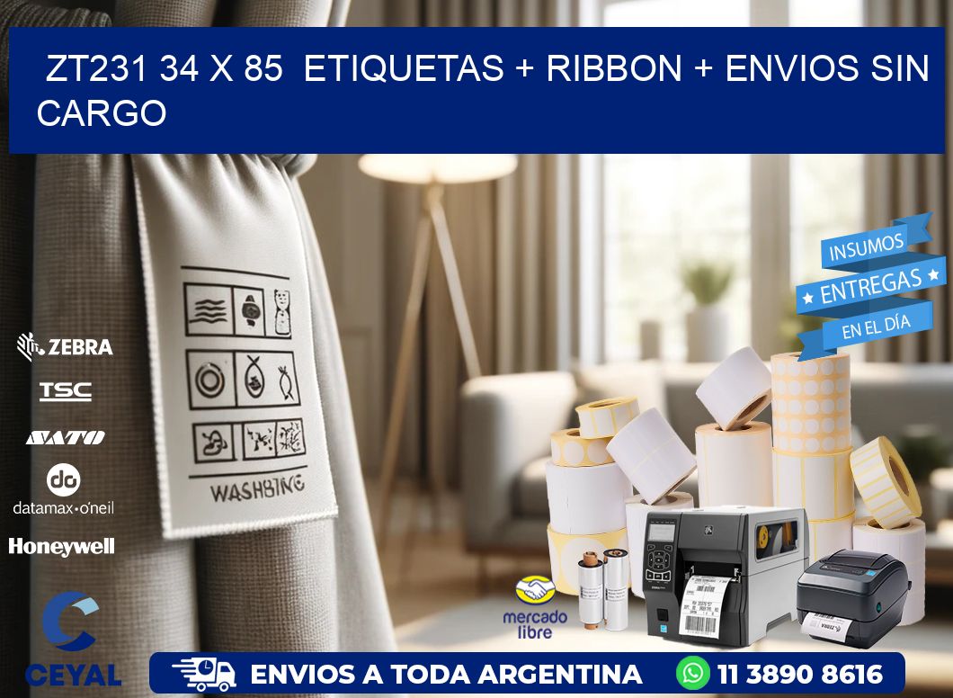 ZT231 34 x 85  etiquetas + ribbon + envios sin cargo